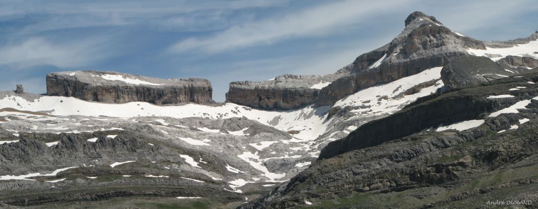 Le doigt de la fausse brèche et la brèche de Roland 2600m sous la coupe du Casque du Marboré 3012m.