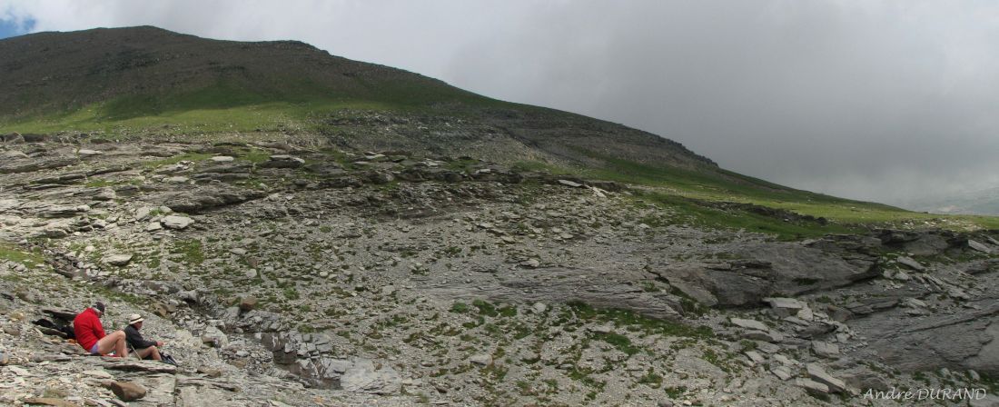 Que montre Jean Luc sur le versant opposé du canyon ? Cliquer sur la photo.