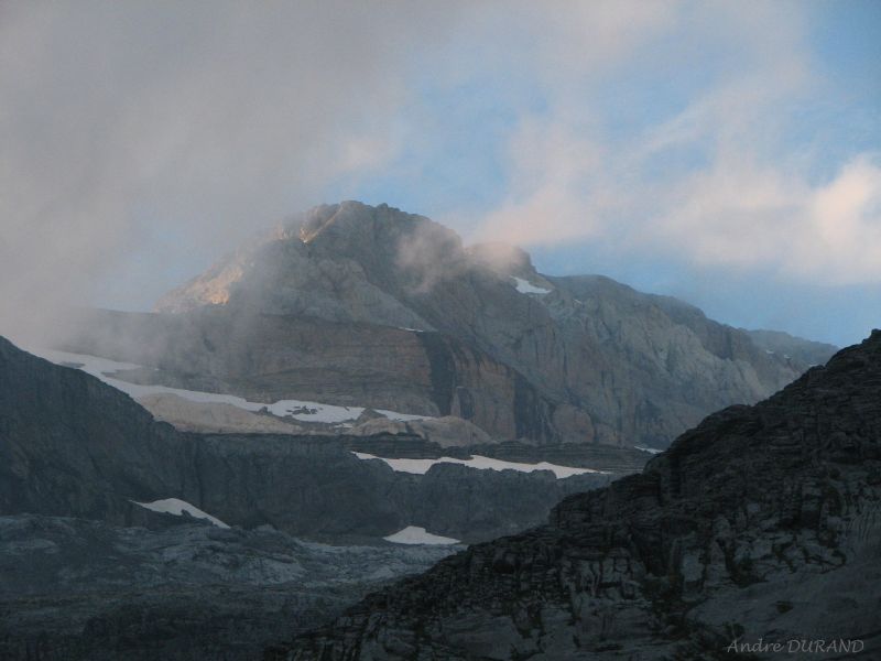 Un coup d'oeil à 20h, le ciel se dégage, le Mt Perdu sort de sa cangue de nuage. La météo du refuge annonce le beau temps pour demain...