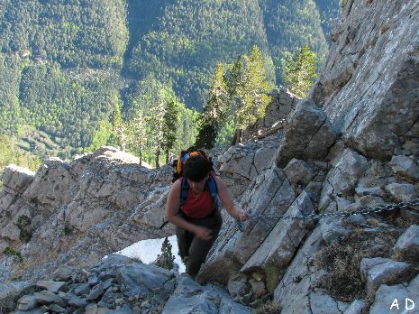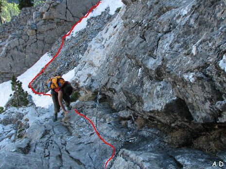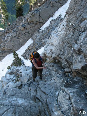 Bien équipé, ce passage de barre rocheuse permet d'éviter un détour par l'Ouest