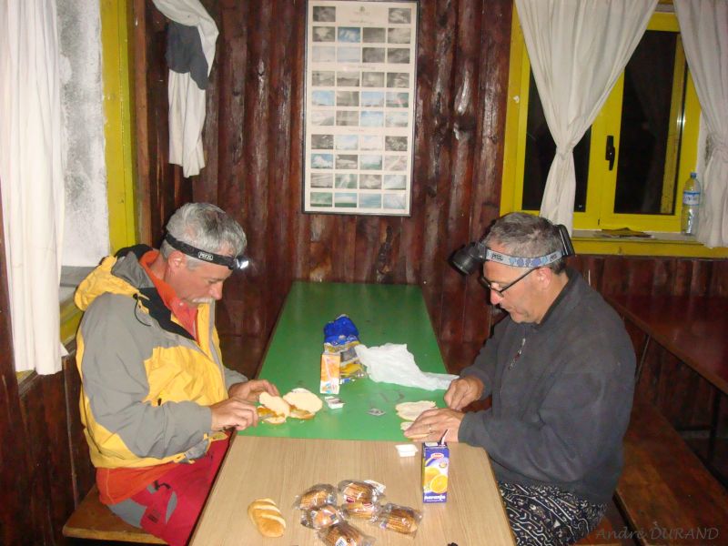 Refuge de Goriz, 5h, le gardien nous a laissé le petit déjeuner sur la table.