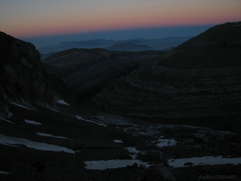 Départ à 5h35, à 6h40, le jour se lève sur Ordesa.