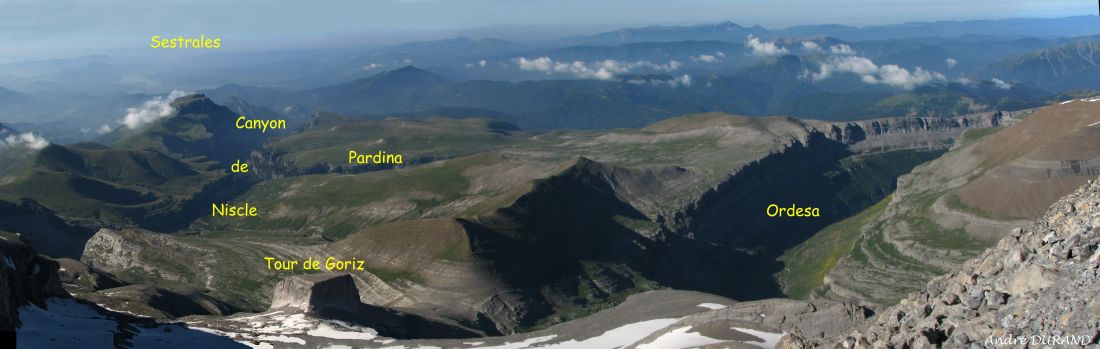 Niscle avec le canyon de Pardina, la Tour de Goriz et le canyon d'Ordesa.