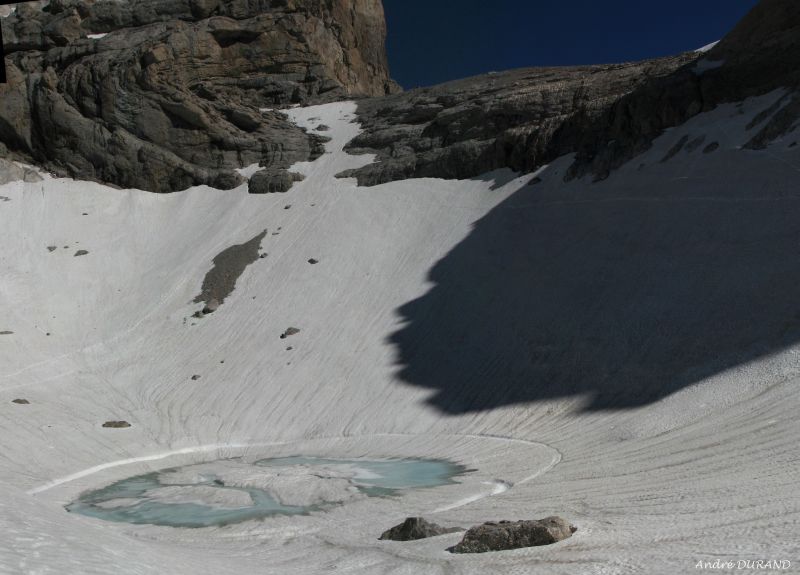 L'étang Glacé et le col du Cylindre sortent de l'ombre.