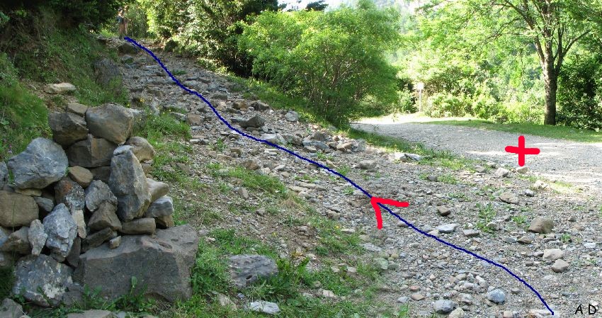 ... un cairn vous invite à quitter la piste et prendre le chemin qui coupe les lacets de la piste menant à la cabane d'Otal |