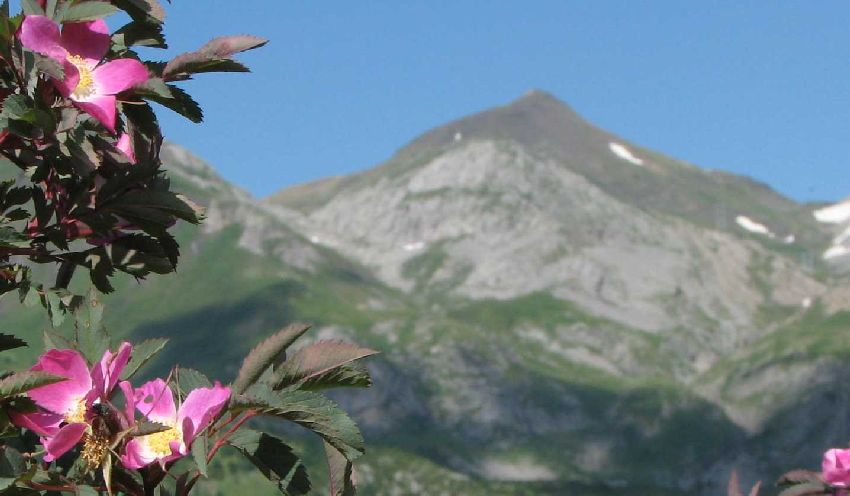 Le long du chemin, en cette saison, pas mal de fleurs agrémentent la montée, en fond le pic entre les Ports au dessus de Boucharo (Gavarnie)