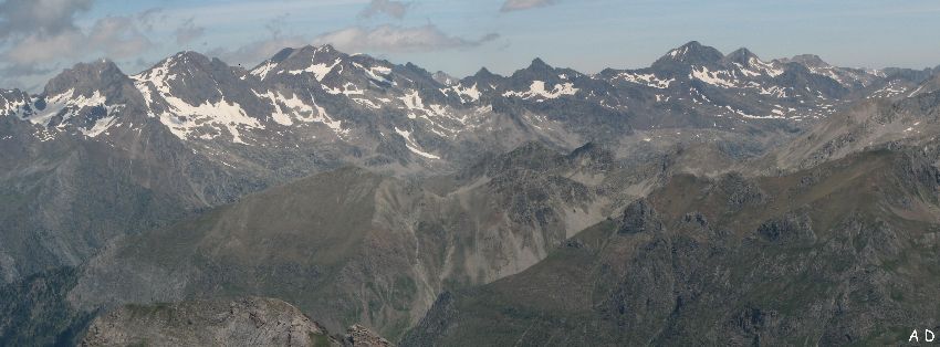 Au Nord, le massif de l'enfer et les sommets dominant le Marcadau. (Cliquez sur la photo pour afficher la légende) |