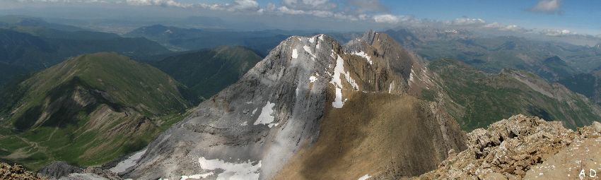 A l'Ouest, Mallos Ras Blanca 2823m, et le peña Sabocos 2757m facilement accessible depuis Panticosa. (Cliquez sur la photo pour afficher la légende) |