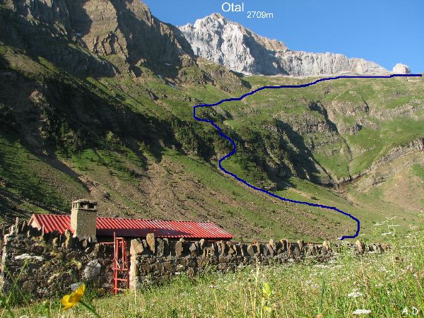 .Le matin en passant j'avais repéré l'éventuel passage, mais lorsque nous sommes sur les vires, il est difficile de distinguer le cheminement en raison de la forte pente et des barres rocheuses du cirque d'Otal.