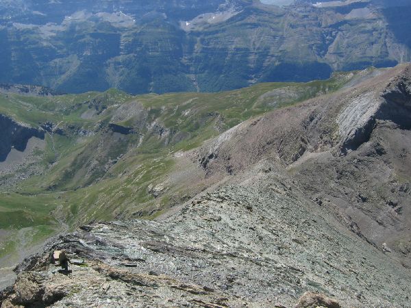 et une sente plonge sur le flanc sud-est et 400m plus bas, traverse sous la crête pour rejoindre le col de las Puertas 2533m .