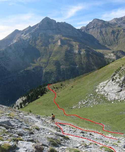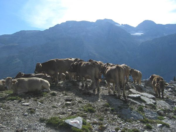 ... le plateau de Lalarri 400m plus bas. Au passage, un troupeau de vache, paisible, rumine sur fond de Mont Perdu.