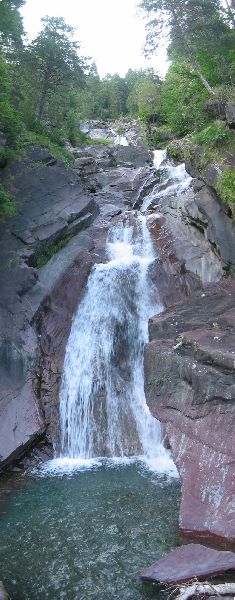 Suivre la piste qui descend du plateau de Lalarri et après le pont du torrent de Lalarri, prendre sur la gauche le chemin des cascades qui vous mènera directement, à travers bois, au plateau du camping de Pineta.