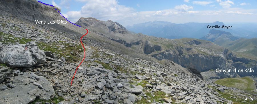 Nous laissons le croisement de la cheminée de Las Olas à la recherche d'un plat, herbeux si possible, pour installer la tente du bivouac