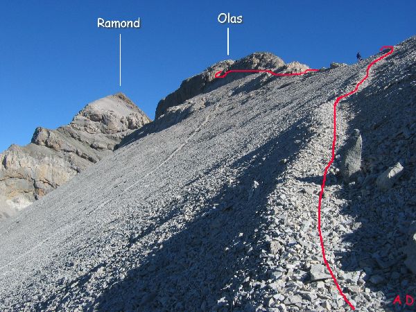 Le sommet de Las Olas 3022m avec en arrière plan le Soum de Ramond Carte