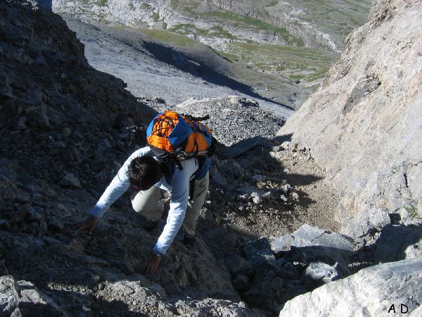 Cheminée du sommet de Las Olas qui n'oppose pas de difficulté particulière.