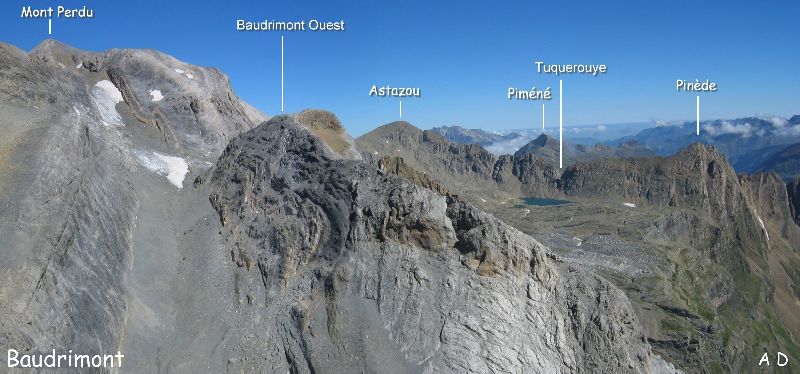 Mont Perdu, Baudrimont Ouest, Astazou, Piméné, Tuquerouye et lac du Marboré, pic de Pinède Carte