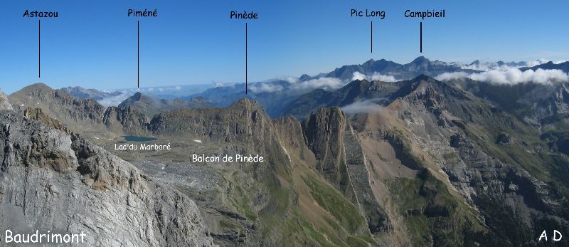 Ce sommet dominant le cirque de Pinède, offre un point de vue particulier sur les sommets environnants.