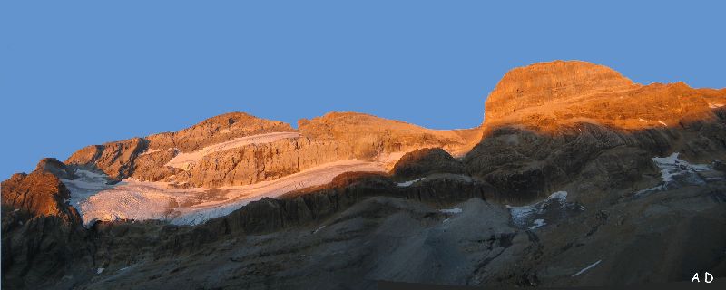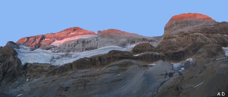 Lever de soleil. Que le spectacle commence sur la face Nord du Mont Perdu!!! Carte