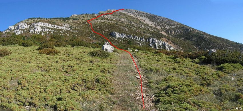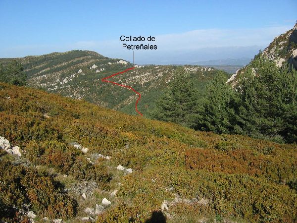 Derrière nous, le col de Petreñales avec son chemin descendant, .