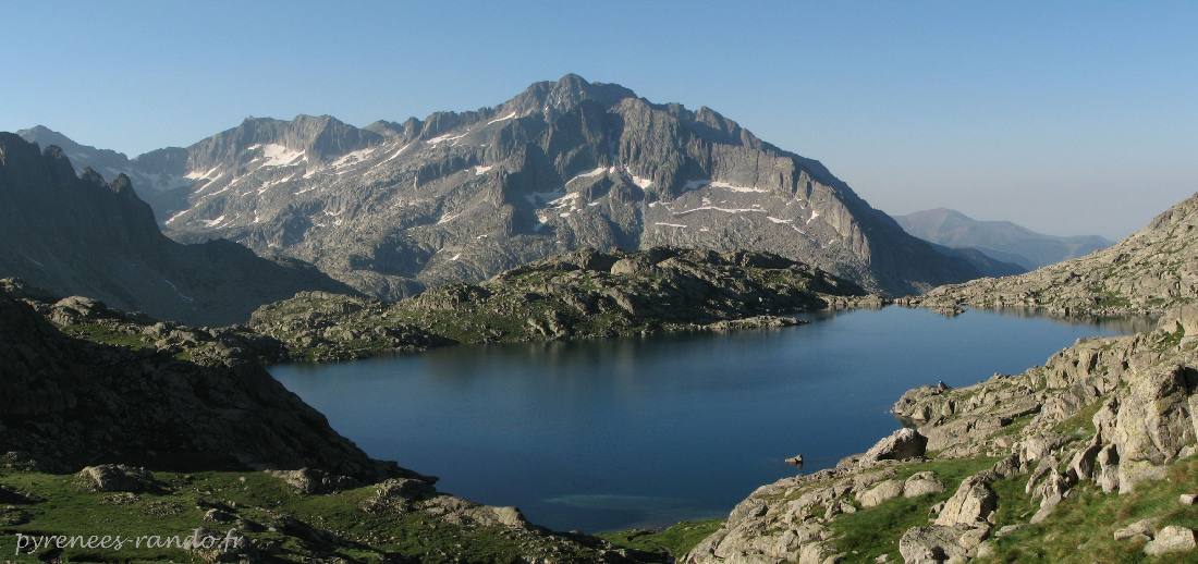 Depuis le col de la Crestada, l'étang de Monges et le massif de la Punta Alta 3014m.