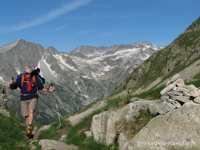 Port de Ruis 2344m avec le pic Russel et l'Anéto en fond.