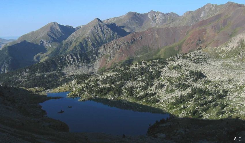 Invitation à la féerie du matin sur le lac de Gémena avec en arrière plan le massif de Capcères d'Estany Roi