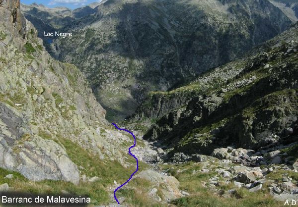 La descente par le Barranc de Malavesina est abrupte, la vue sur le ...
