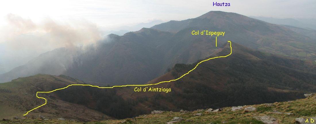 Zoom sur le col d'Aintziaga et en fond le col d'Ispeguy avec la venta