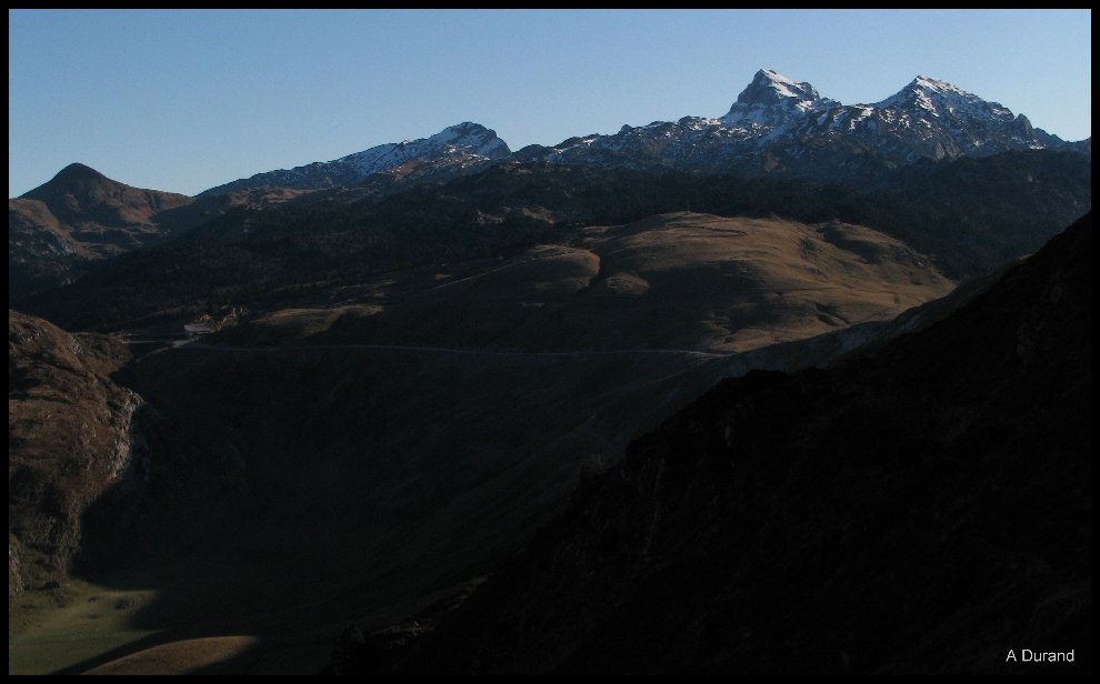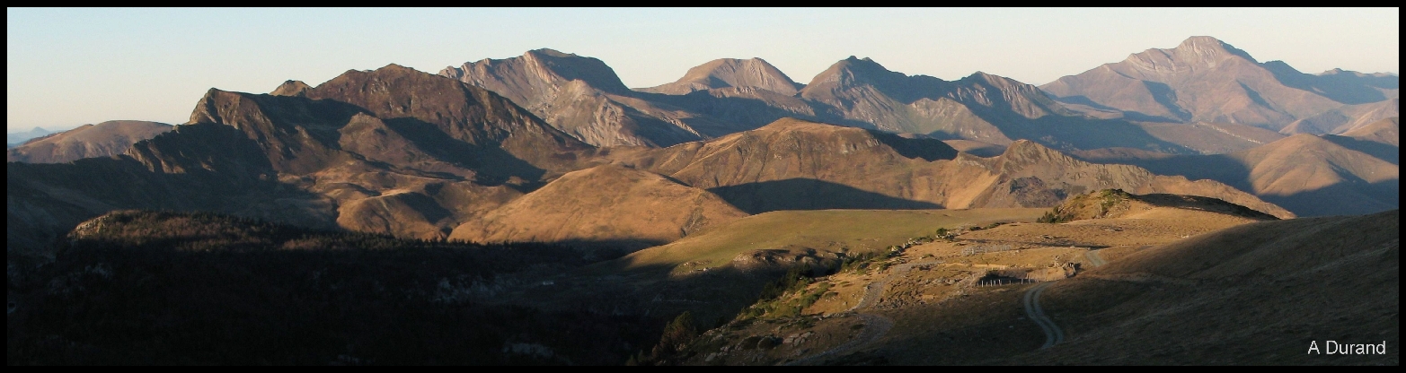 Paysage Ouest avec l'Orhy (extrême droite), le premier 2000m en venant de l'océan depuis le soum de Lèche (1839m).