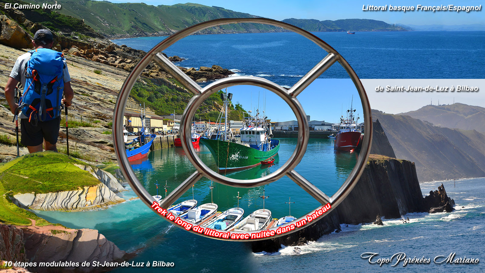 Randonnées le long du littoral basque, de Saint Jean de Luz à Bilbao, 200Km de sentiers modulables avec nuitées en "refuge" sur des voiliers qui se déplacent de port en port.