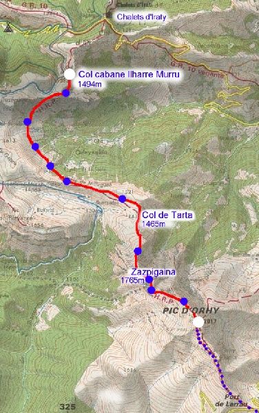 col Ilharre Murru 1494m, grimper sur la crête, et suivre direction