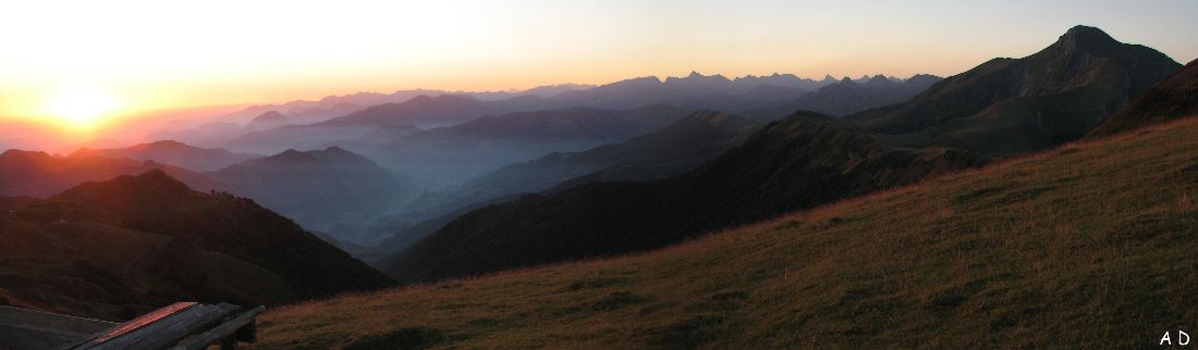 Les premiers rayons du soleil nous éclaboussent. La montagne s'éveille lentement, la brise du matin caresse nos visages.