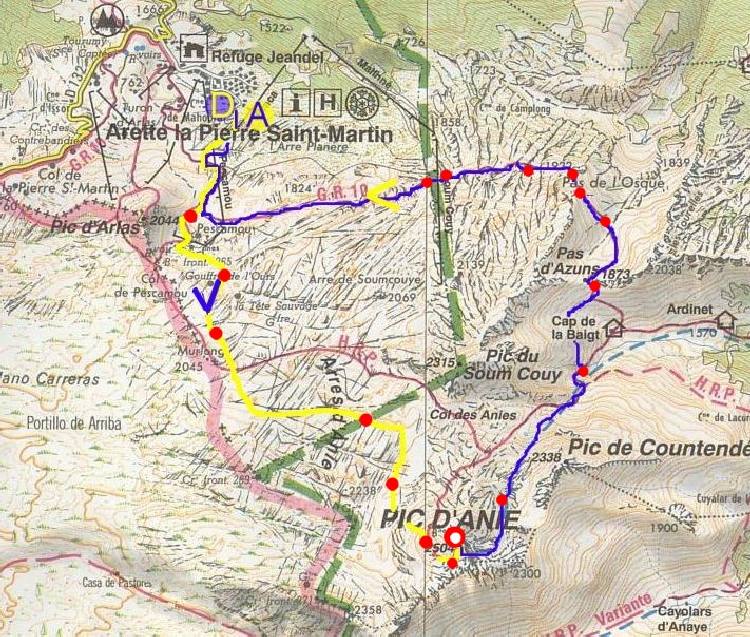 les arres d'Anie pour se retrouver sous le cône sommital plein ouest