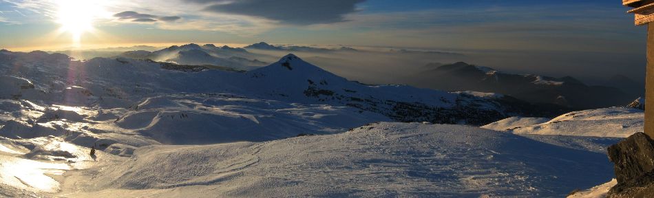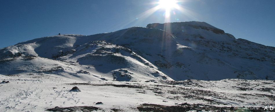 Au dessus, le sommet du Soum Couy, peu de neige en ce jour, il va falloir jouer serrer pour éviter les cailloux... (Cliquer sur la photo pour afficher la légende)