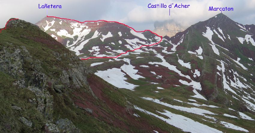 De la crête côte 2074, les objectifs de la journée apparaissent : Lañetera, Castillo d'Acher