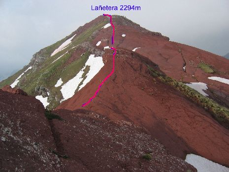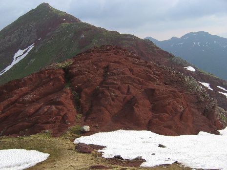 La roche rouge est présente sur toute la crête du Lañetera au Castillo d'Acher
