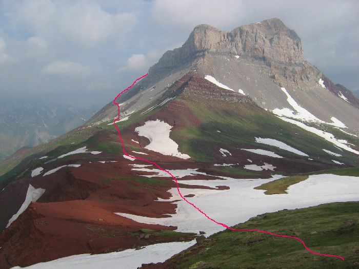 Quelques fleurs s'accrochent sur ces pierres rouges... au pied du Lañetera