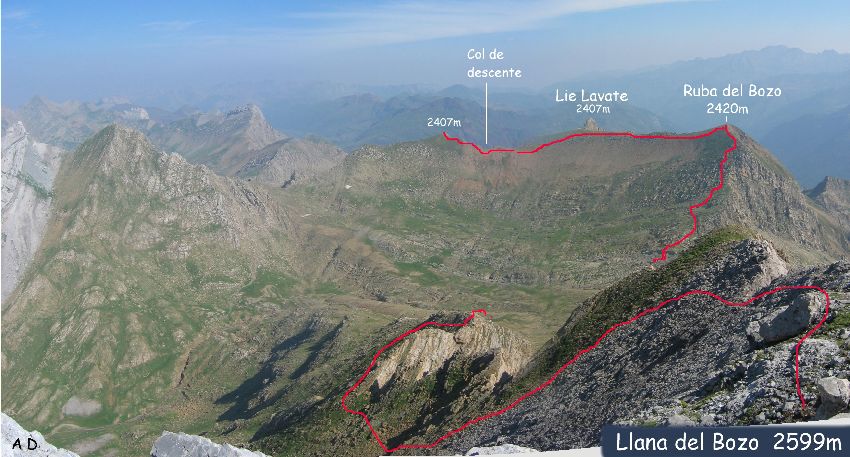 Vue au Sud-Est du pic de Llana de la Garganta 2599m et du pic d'Aspe 2645m