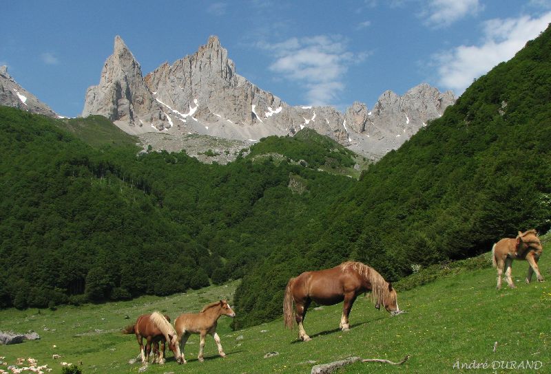 Traditionnelle photo des aiguilles d'Ansabère avec un zeste de neige en cette fin juin.