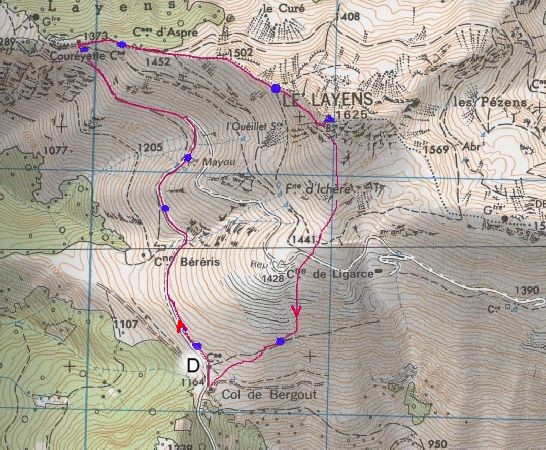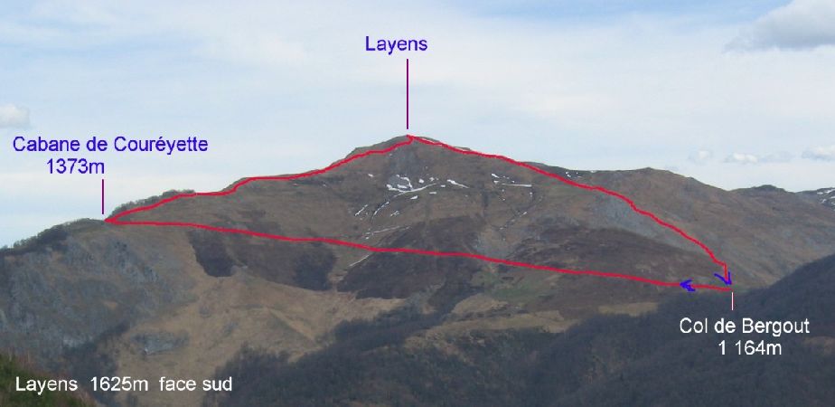 Layens 1 625m par le col de Bergout 1164m |