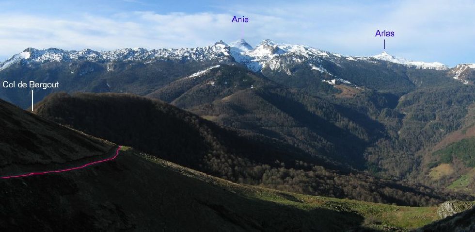 Belle vue le pic d'Anie, la croupe de Berlagne qui mène au Soum Couy, l'Arlas.