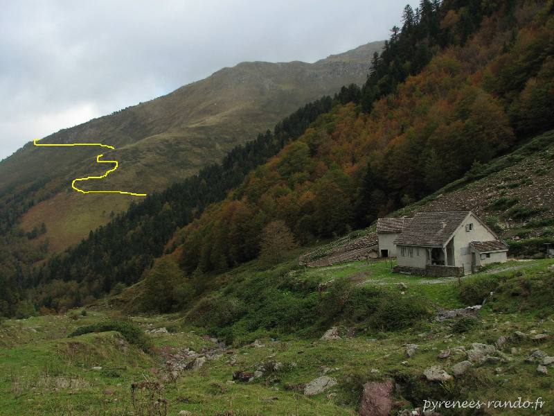 Cabane d'Arnousse et en fond le sentier vers la cabane et le col de