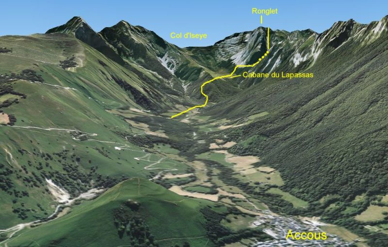 traverser sous les faces du Ronglet et se diriger vers le col de