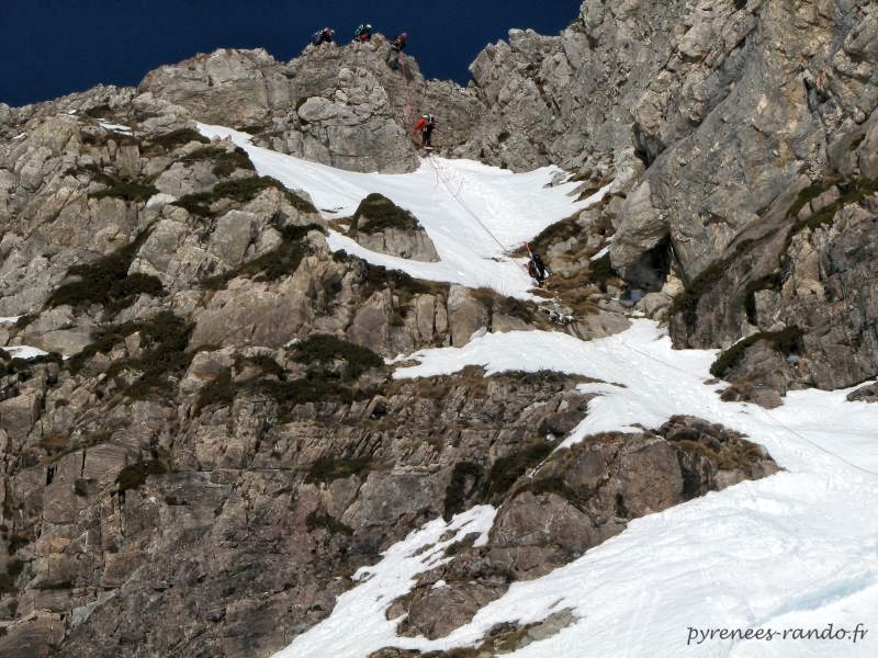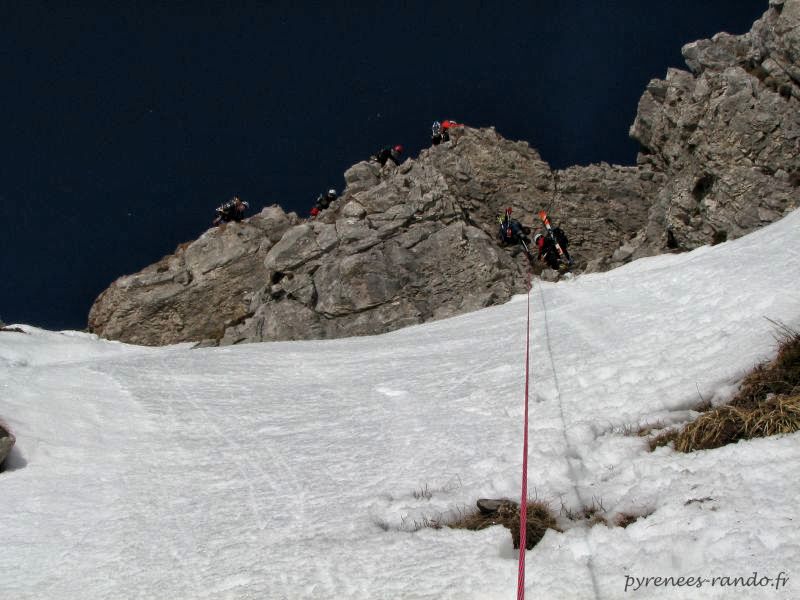Zooms progressifs sur la cheminée Boisson... Itinéraire de descente pour retrouver " le plancher des vaches".