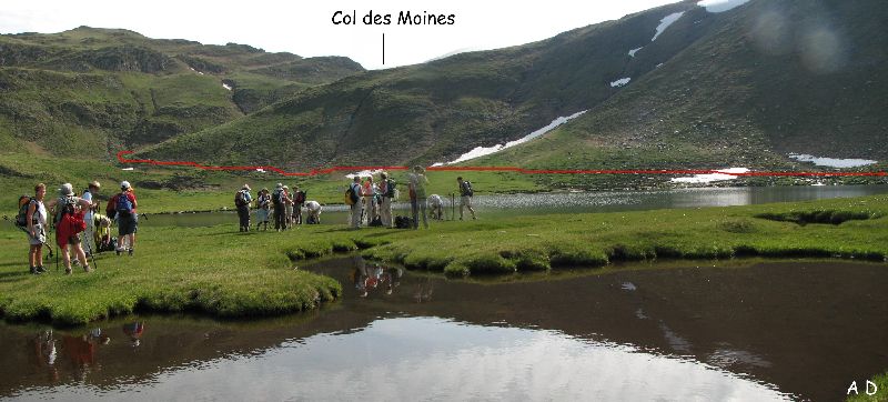 Le lac de l'Escalar 2078m avec le col des Moines en arrière plan.