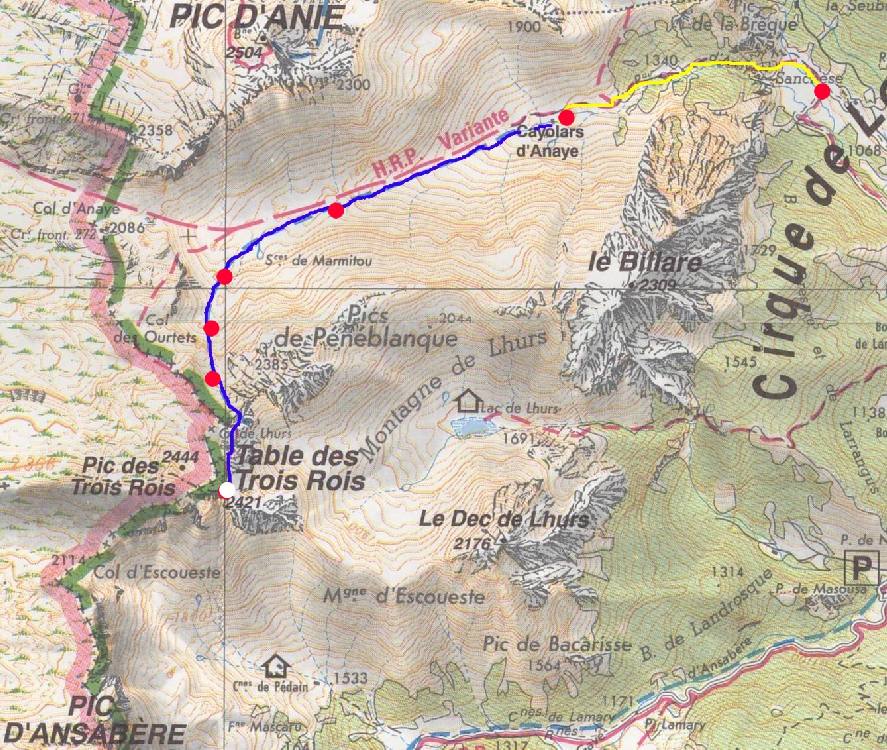 Suivre le vallon, passer sous le pic de Peneblanque, et se diriger