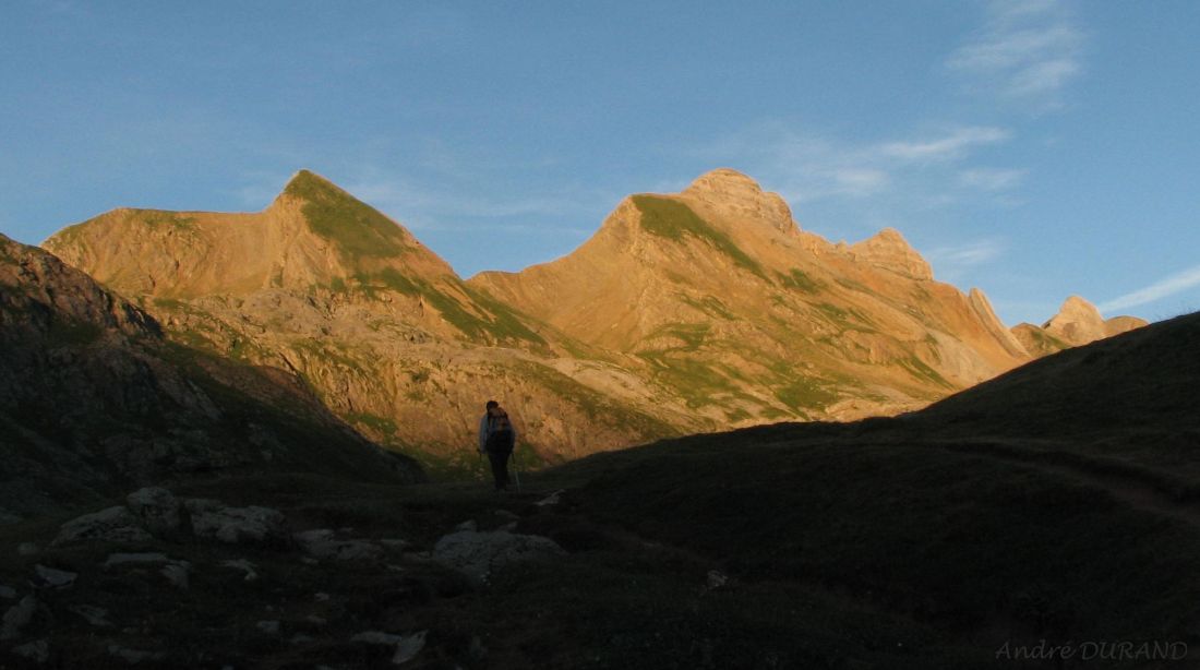 Après un départ à 6h du parking de Sansanet 1311m, le lever du soleil éclaire la sierra de Bernera...