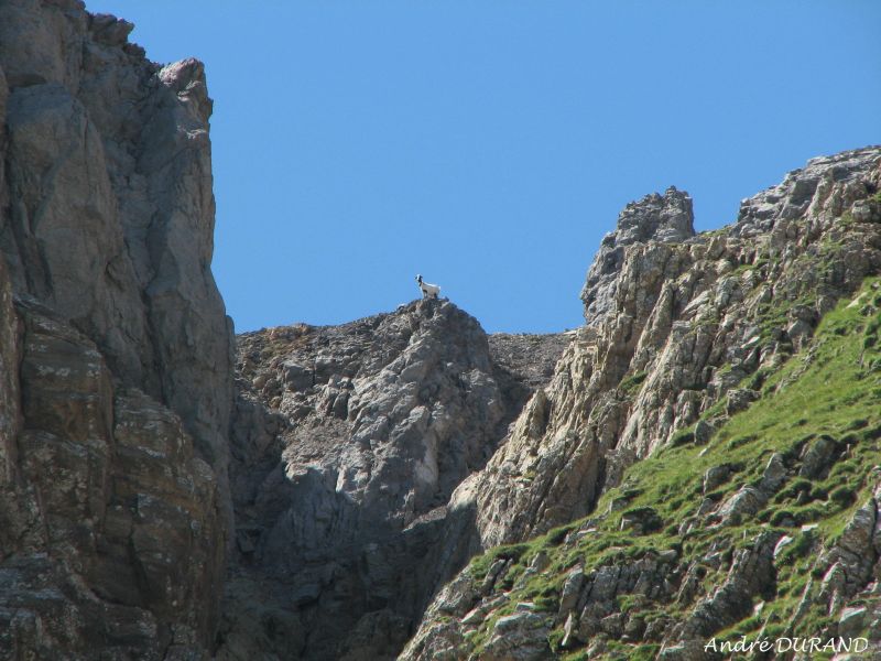 Zoom sur les chèvres sauvages perchées sur les crêtes.
