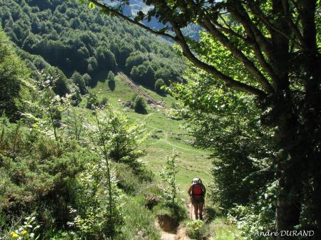 La remontée par le chemin qui mène à la cabane d'Escouret dans le vallon d'Espélunguère.