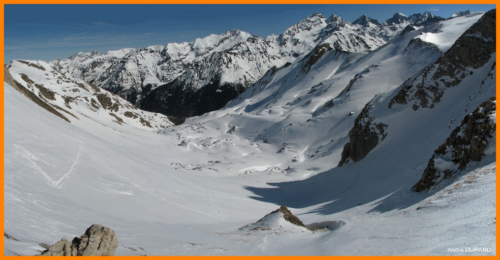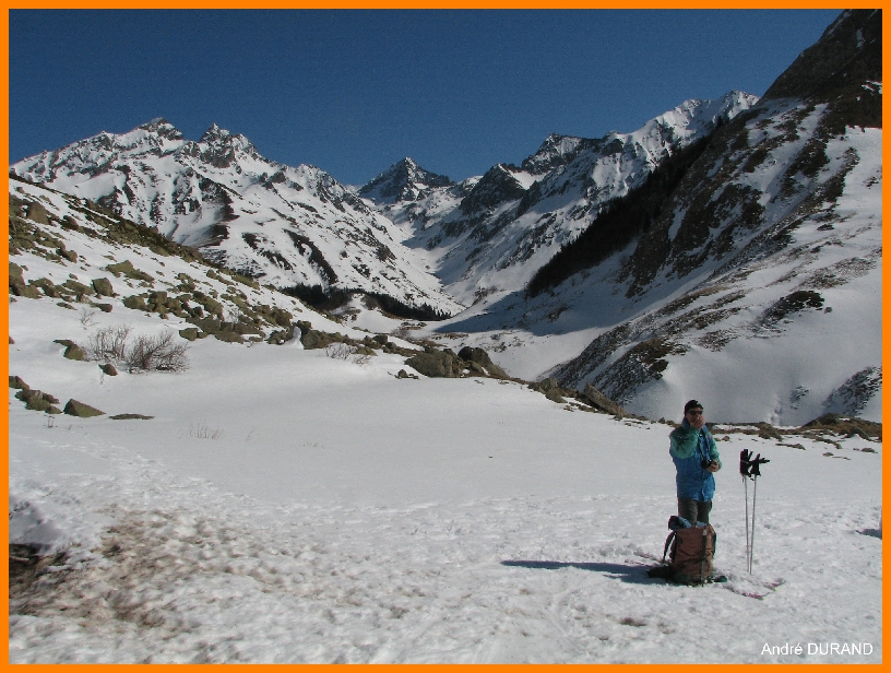 Dans la descente, vue sur la vallée d'Arrious, avec le Palas qui en barre le haut.